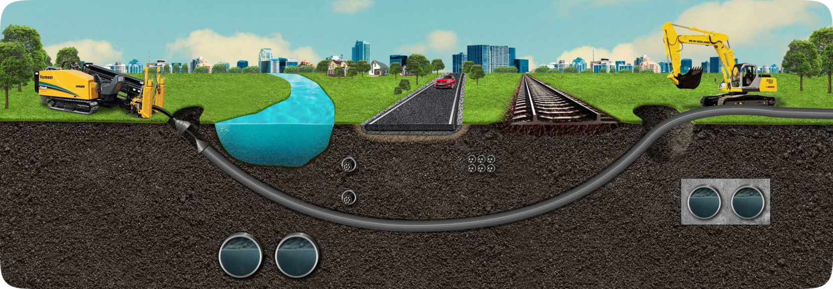 Многолетний опыт в сфере бестраншейной прокладки труб методом ГНБ. Современные надежные установки для ГНБ. Наличие большого парка вспомогательной техники: экскаваторы, манипуляторы, тралы, тягачи, водовозы. Полный цикл работ: обследование, проектирование, согласование, сдача объекта заинтересованным организациям. Ориентированность на долгосрочное партнерство.